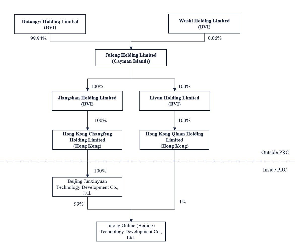 To facilitate our offshore financing, we initiated a reorganization since July 2023. In August 2023, Julong Holding Limited, or the Parent, was incorporated as our ultimate offshore holding company in the Cayman Islands. In August 2023, through the Parent, we established Jiangshan Holding Limited, or Jiangshan BVI, a wholly-owned subsidiary in the British Virgin Islands. In September 2023, through Jiangshan BVI, we established Hong Kong Changfeng Holding Limited, or HK Changfeng, a wholly-owned subsidiary in Hong Kong. In November 2023, through HK Changfeng, we established Beijing Junxinyuan Technology Development Co., Ltd., or Beijing Junxinyuan, a wholly-owned subsidiary in the PRC. In December 2023, Hong Kong Qinan Holding Limited, or HK Qinan, a limited liability company incorporated in the Hong Kong and wholly owned by Liyun Holding Limited, or Liyun BVI, a limited liability company incorporated in the British Virgin Islands, acquired 1.0% of the equity interests in Julong Online. Later in the same month, as part of our reorganization, Beijing Huiju Tianxia Investment Co. Ltd., the shareholder then holding 99.0% of the equity interests in Julong Online, transferred all such equity interests to Beijing Junxinyuan. In February 2024, the Parent acquired 100% of the equity interests in Liyun BVI.